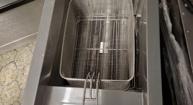 Freidora de gas de acero inoxidable, ideal para hostelería.